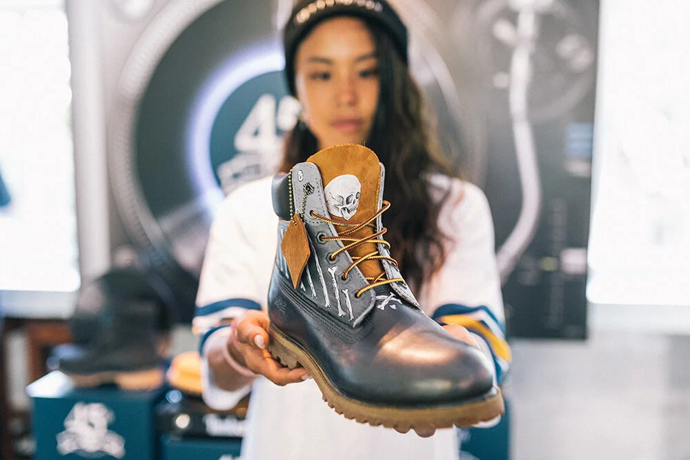 Top: Custom paint job on a used skate deck for ATTAGIRL! Anniversary X Good Times