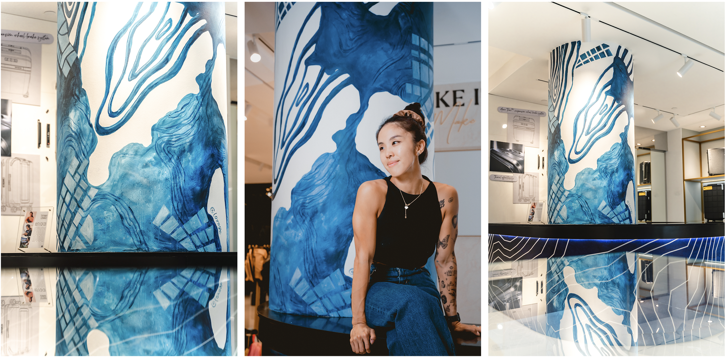 Inspired by a sense of wanderlust, the mural incorporates elements from diverse map styles. Juxtaposing the organic nature with the structure of metropolitan cities, it entices visitors to commence an exploratory adventure as they step into the store.